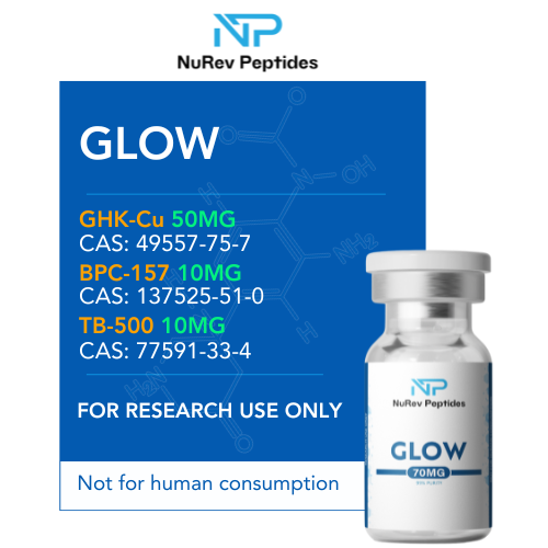 GLOW 70MG is supplied by NuRev Peptides strictly for laboratory research and testing purposes. All information presented here is neutral, factual, and intended to support scientific discussion rather than clinical, therapeutic, or diagnostic application. This product is not intended for human or animal use.