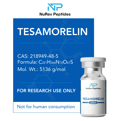 Research discussions may also reference Tesamorelin 10MG in the context of non-clinical metabolic models, lipid-handling endpoints, and exploratory lean-mass or cognitive research frameworks. NuRev Peptides does not make claims regarding efficacy, outcomes, or safety related to Tesamorelin 10MG.